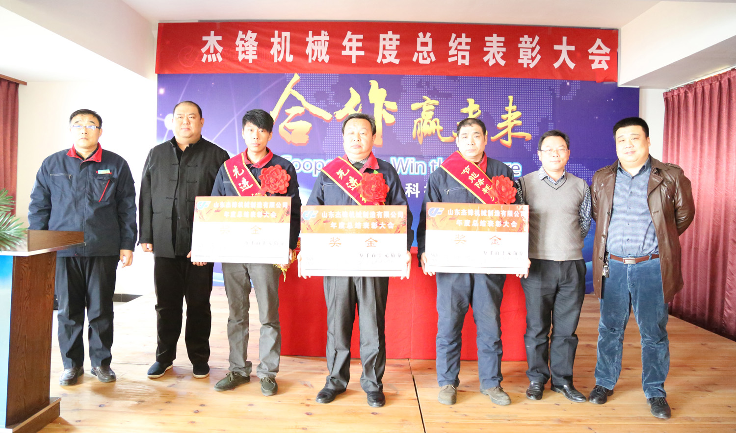 杰锋机械年度总结表彰大会于3月4日下午在公司会议室隆重举行。全体员工参加会议。会议由公司副总朱秀强主持,销售副总钟来发和公司总经理先后做了重要讲话。大会主要内容有: