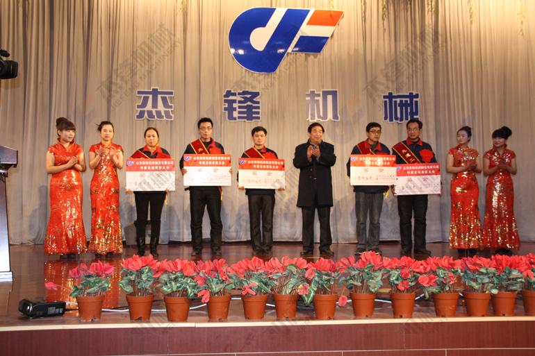 年度表彰大会共设立7个奖项,表彰12人、1个班组,公司董事长张杰、总经理张吉祥、副总经理张庆祥予以颁奖,颁奖结束后由先进工作者代表发言;